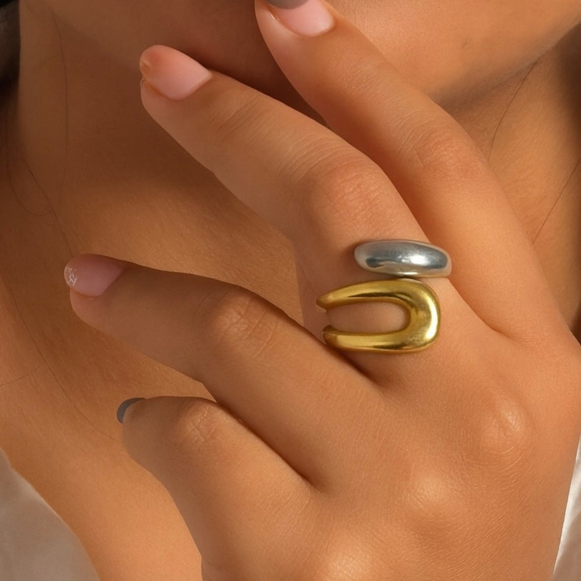 The Twine of Gold & Silver Ring by Febae celebrates the harmony of contrast — where warm 18K PVD gold meets cool silver tones. Its smooth, sculpted design reflects both elegance and modern minimalism, making it an ideal statement piece for any occasion.