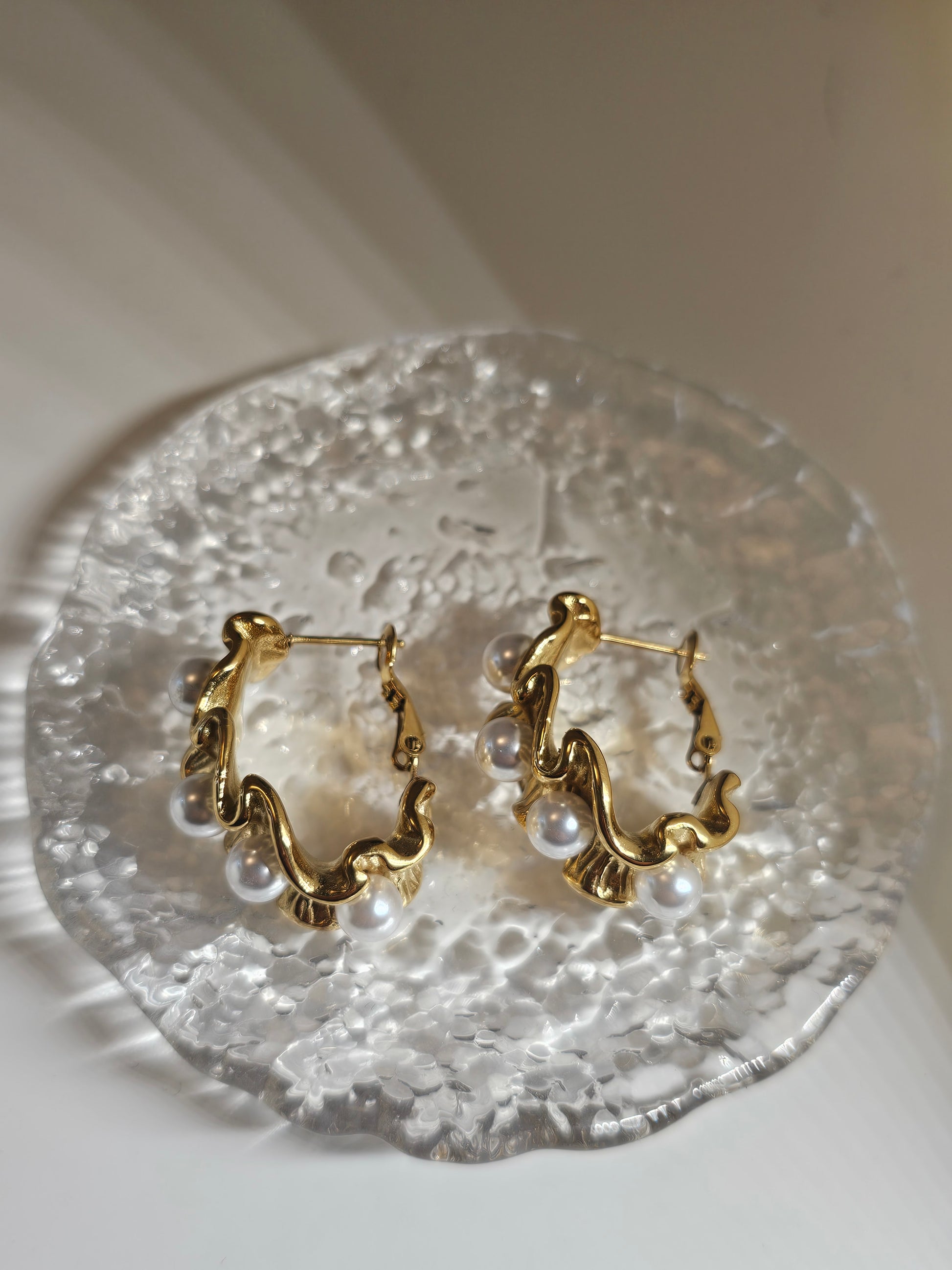 Febae Premium Goldene Creolen mit Perlen – Klassische Eleganz trifft auf moderne Haltbarkeit