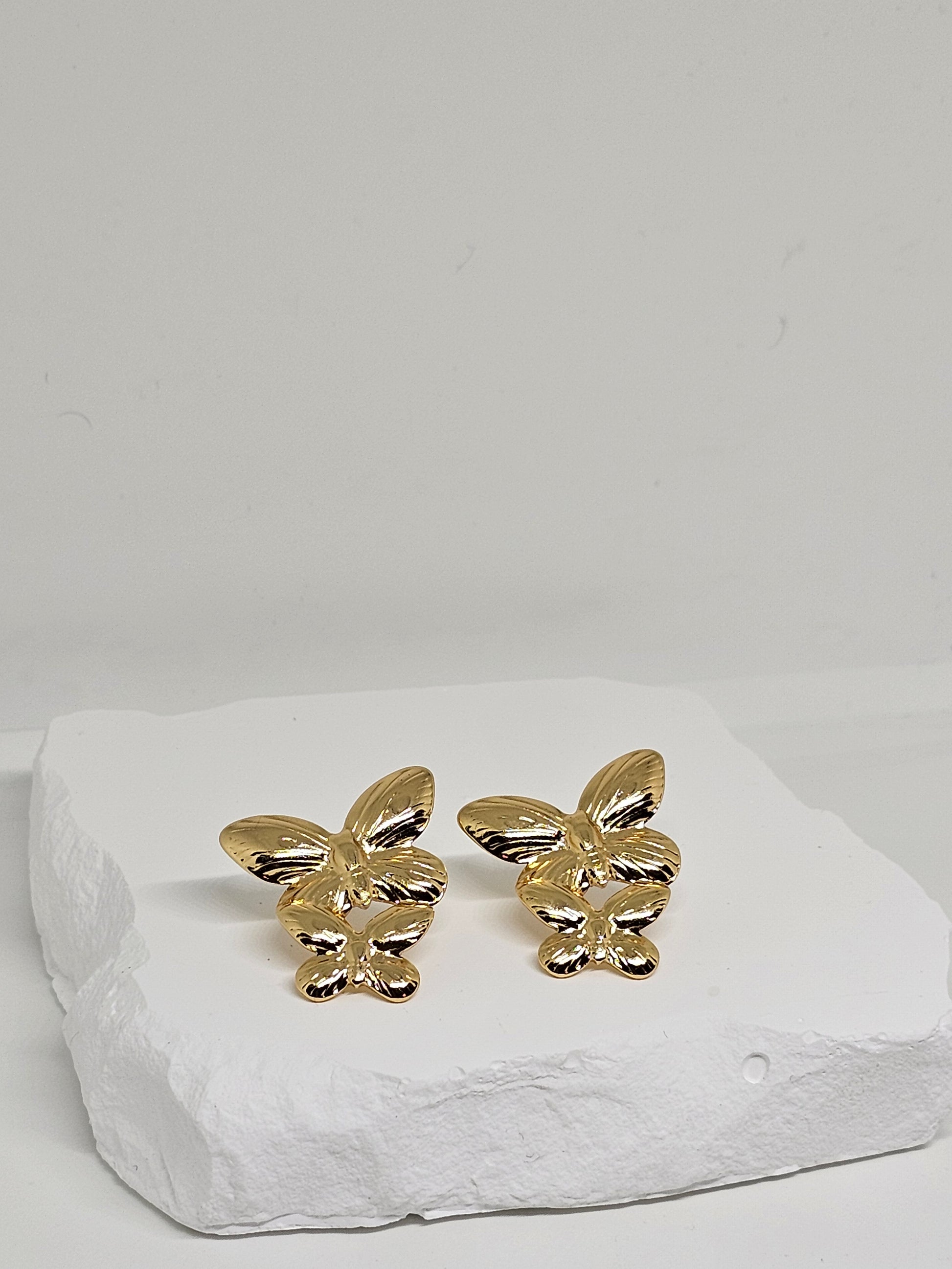 Febae Basics Doppel-Schmetterlingsohrringe – Eleganter, vergoldeter, leichter Schmuckanhänger