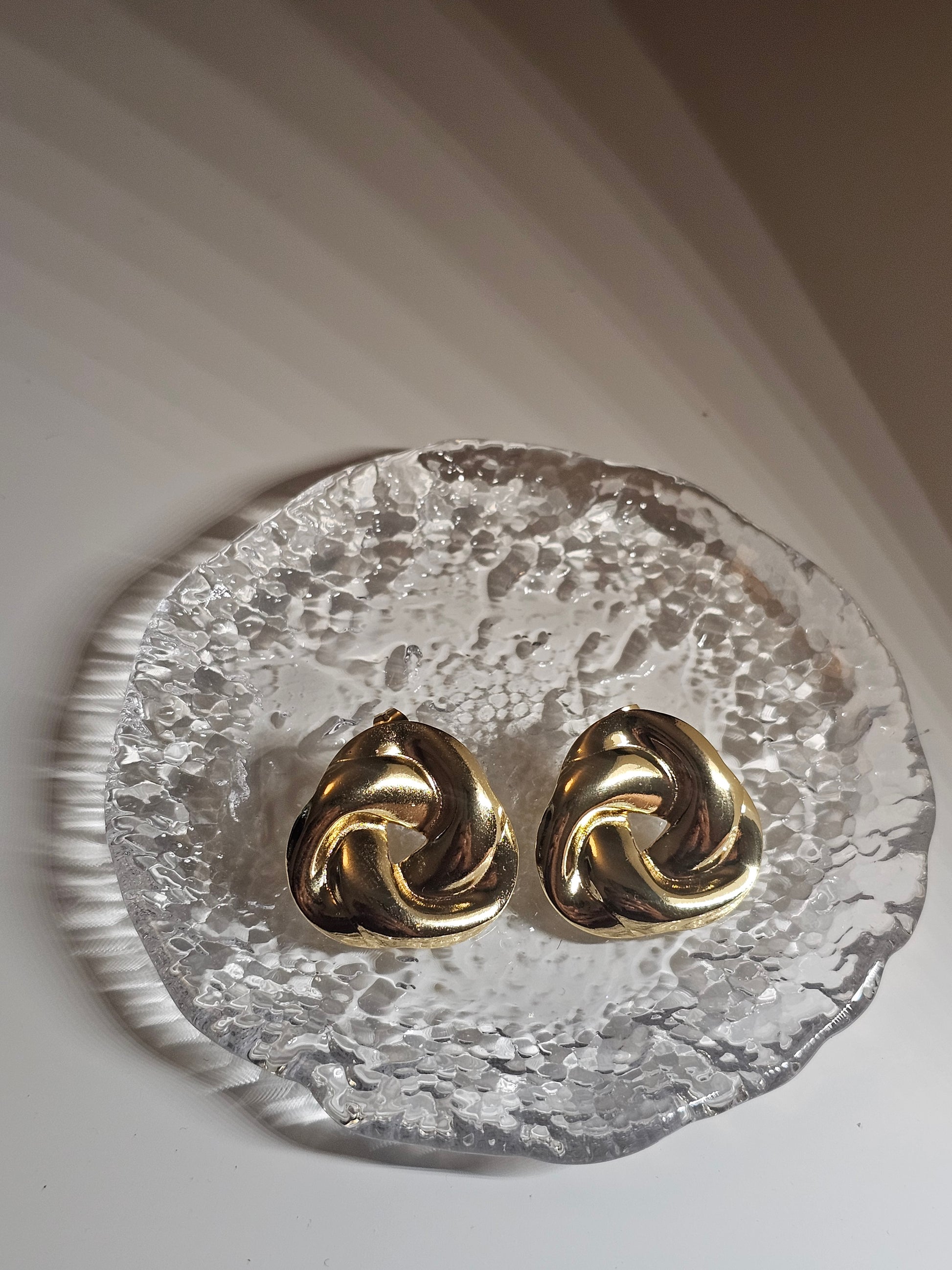 Diese Ohrringe sind mit einer strahlenden, hochwertigen Vergoldung gefertigt und glänzen, ohne zu verblassen. Die strukturierte, gedrehte Form reflektiert das Licht wunderschön und verleiht Ihrer Schmucksammlung eine einzigartige Note.